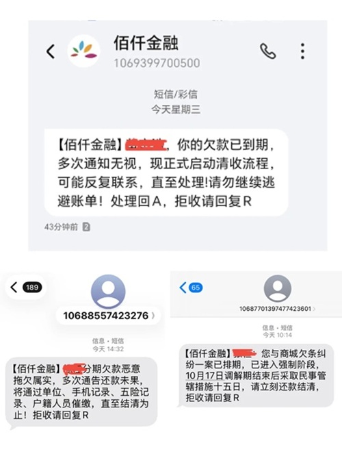 我司陆续收到反馈,有不法分子冒用我司名义,通过1068、1069等网络短信号码发送诈骗短信。短信内容有涉及到:账单清收、外访部门会走访调查取证、邮寄法律文书、发送函件到单位等,均非我司官方行为,请勿轻信。